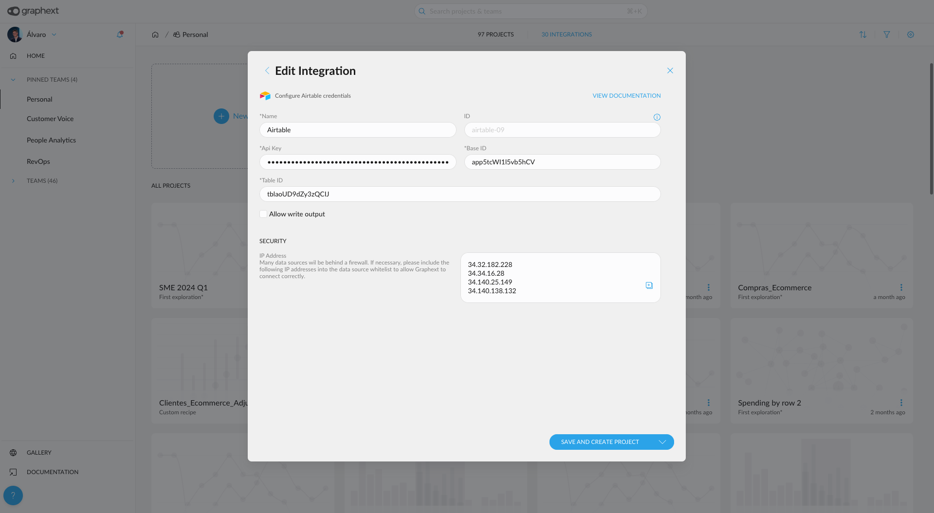 If you want Graphext to write back the project’s output to Airtable. Select “Allow write output.” View more documentation about this step in our API Docs.
